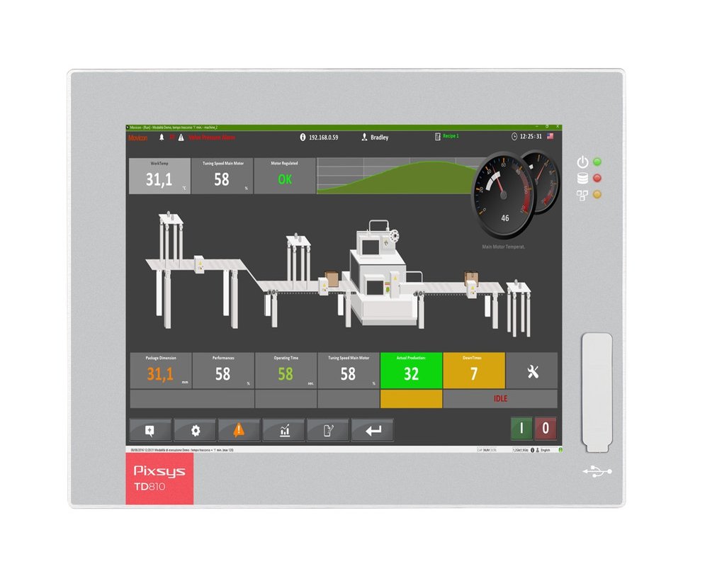 HMI touchscreen 10.4” (800x600) with integrated soft-PLC. PIXSYS