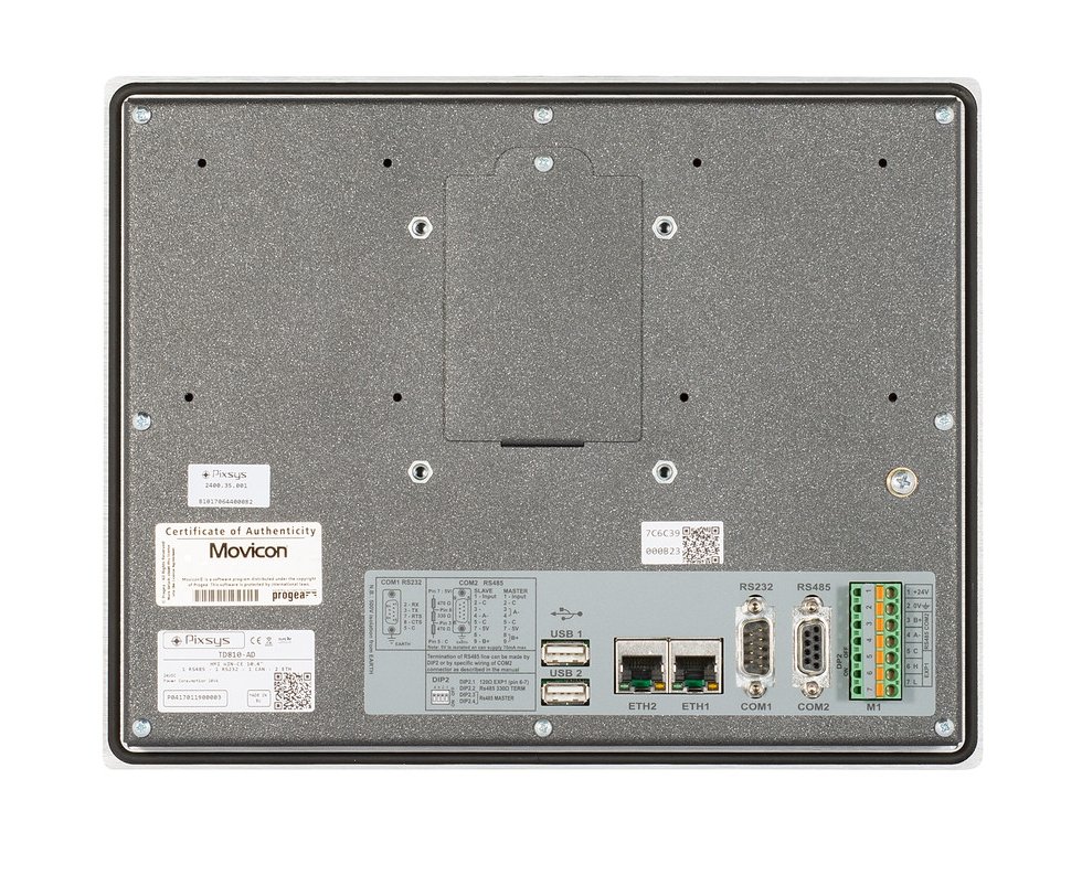 - TD810-AD: HMI 10" integrating soft-plc + 1 RS485 + 1 CANopen + 1 Ethernet + Movicon CE Lite