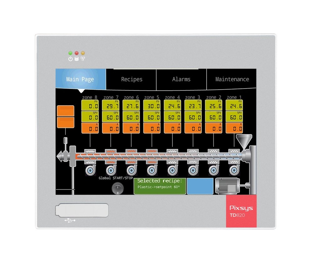 HMI touchscreen 12.1” (1.280x800) with integrated soft-PLC. PIXSYS