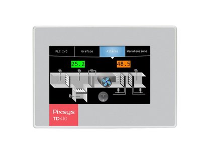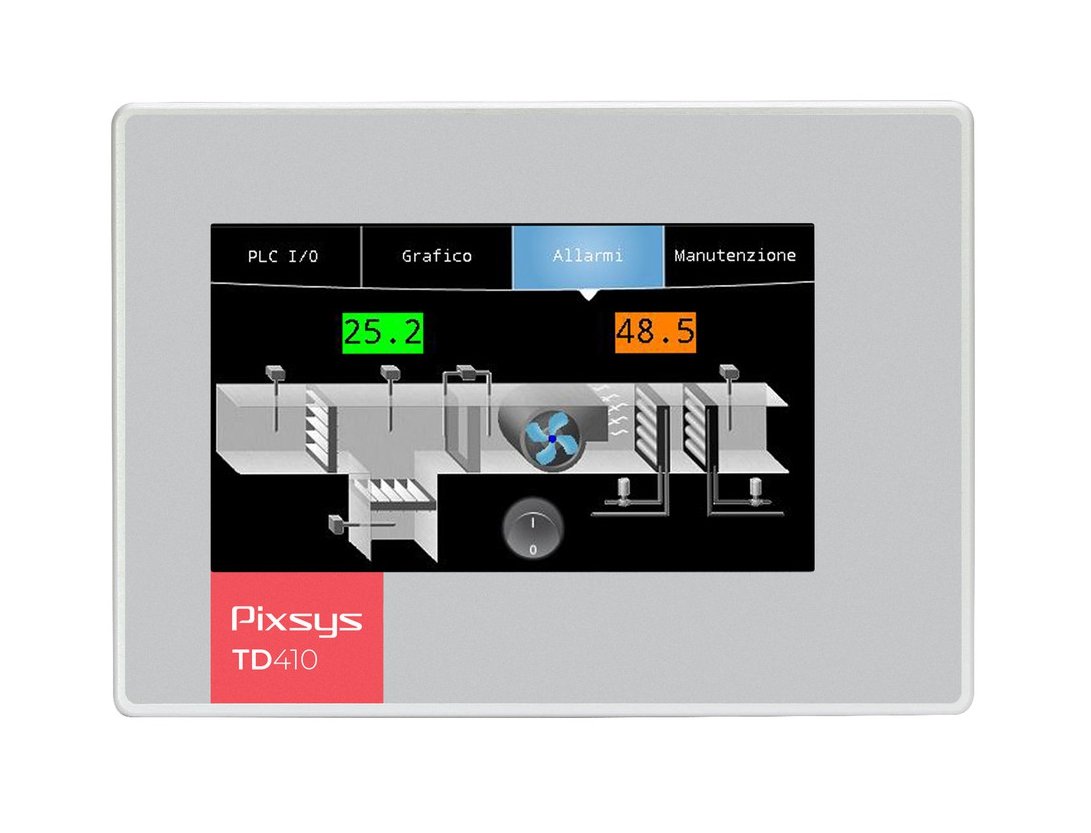 HMI touchscreen 4.3” (800x480), with integrated soft-PLC. PIXSYS