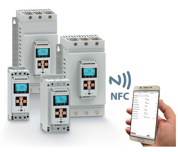 The new range of LOVATO Electric Soft Starters series from 30 to 115 A with a backlit LCD icon display and NFC connectivity for quick and easy configuration, even from smartphones and tablets.