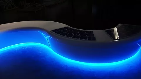 The watertight bench can be opened and be used for other technical purposes like the installation of a camouflaged base station for a telecommunications provider or simply more batteries.