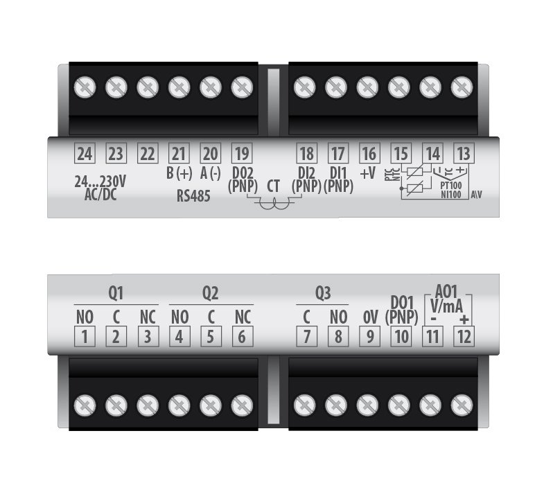 - Digital input: 2 x PNP, programmable for Setpoint change/ Hold/ Run/ StartTuning, Start -Stop/ configuration lock