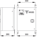 AN30 series is made for wall installation, cable entry form bottom, maintenance form front plant, capacitors climbed on threaded plate, metal case in a strong steel sheet and painted with epoxy resin RAL7035.