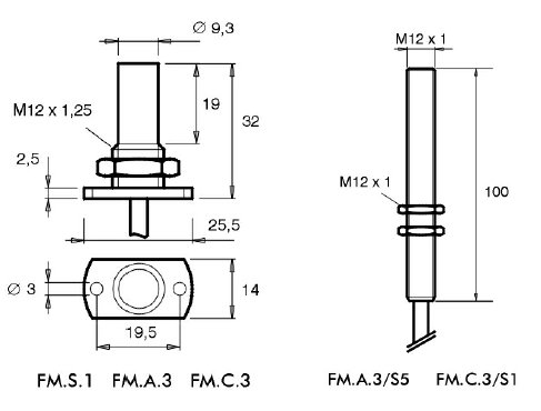 Cylindrical plastic or brass housing M12 , Ø13.5 magnetic sensors with front switching.