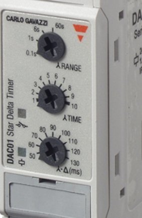 Special multi-voltage (and 380-415 V AC) Star-Delta timers with 4 selectable time ranges within 0.1 s and 600 s., for mounting on 22.5 mm DIN-rail housing or 36 mm plug housing.