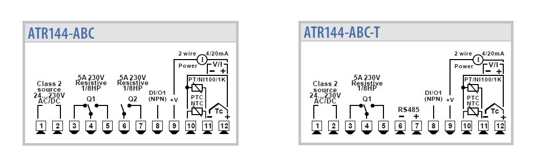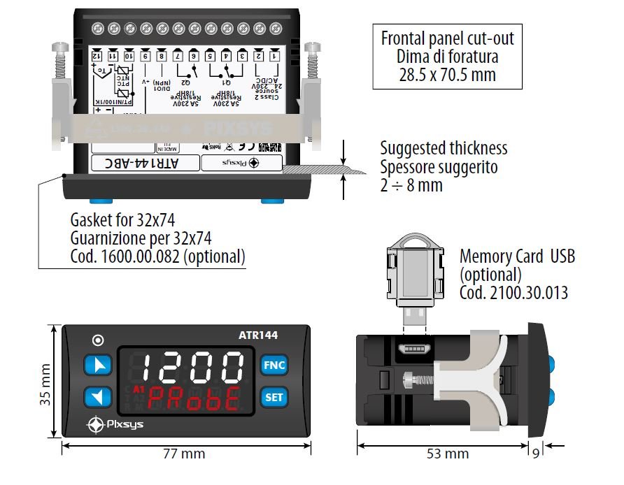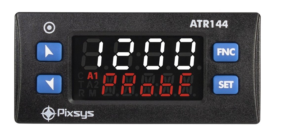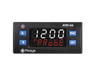 Process controller ATR144 is latest release of Pixsys controllers size 32x74mm, integrating recent Blue line standards that have been introduced with ATR244. It stands out for bright display, ensuring optimal visibility in industrial environments and making available more information for the operator as well as a scrolling Help function.