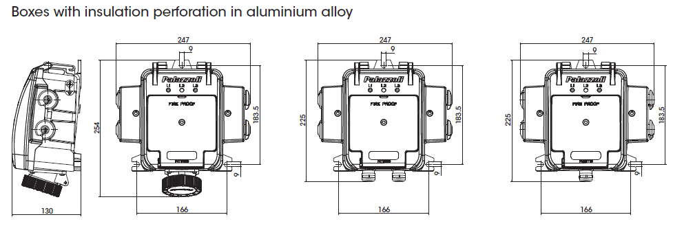 Fire proof boxes in aluminium alloy. Palazzoli