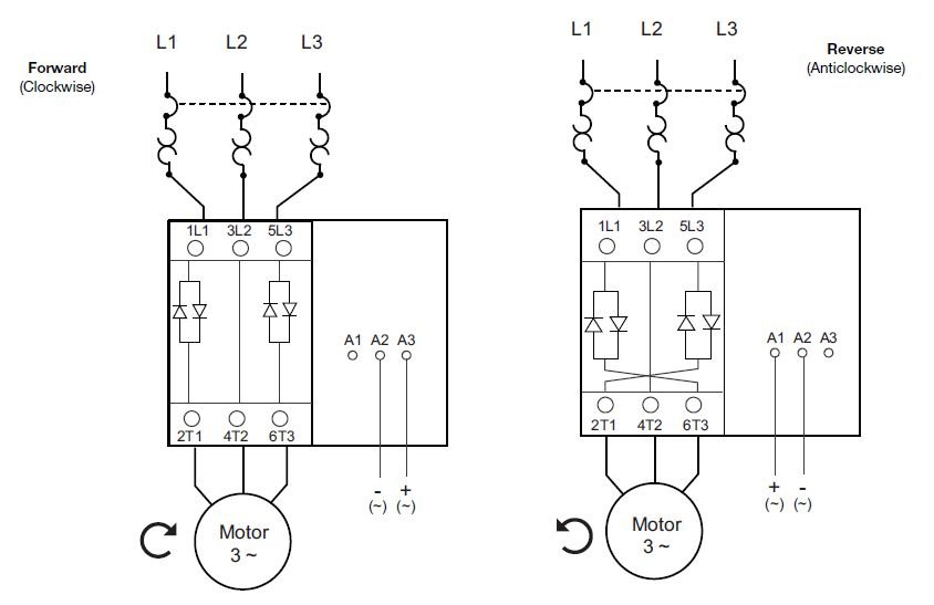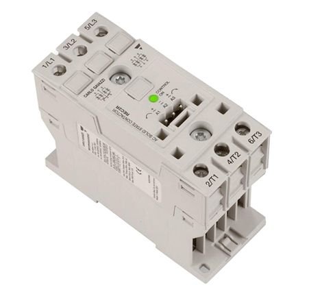 REC2R: The new family of Motor Reversing Controller is designed to control the direction of 3-phase motors rated up to 3,0 kW. The built-in interlocking circuitry prevents the relay from switching both directions simultaneously and produce a short-circuit between the 2 phases of the output. A dual colour LED indicates direction "forward" when green and direction "reverse" when red. The heatsink is enclosed to provide a look alike to its mechanical counterpart and you can put an adapter to couple the REC2R with ABB or Siemens motor overload relay.