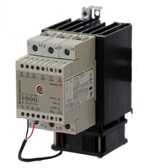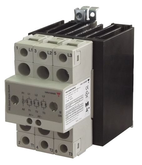 Electronic contactor with Integrated Heatsink intended to replace the traditional mechanical counterpart used to switch resistive and inductive loads up to 11 KW. The RGC range includes 2 phase switching (economy type) and 3 phase switching versions.