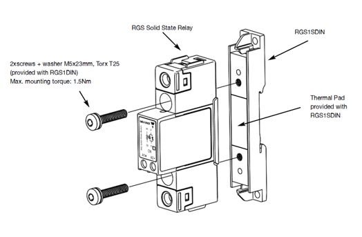 Option RGS1A_U :Thermal pad or Heatsink RHS37A or DIN rail mount