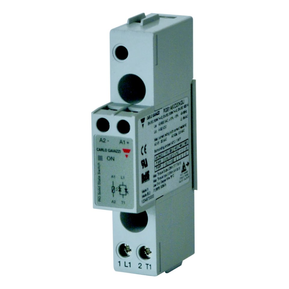 RGS1A_U: solid state devices with width of only 17.5 mm for switching heater and motor loads up to 30 A AC and SSR terminals connection configuration (load input-output terminals on the same side).