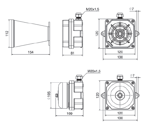 - Sirens in aluminium alloy with vibrating membrane 50-60Hz IP66.
