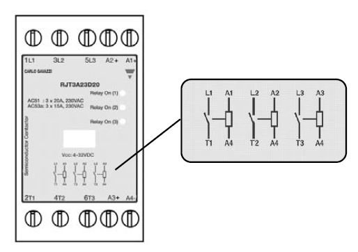 SSR three independent poles and controls with heatsink. Carlo Gavazzi