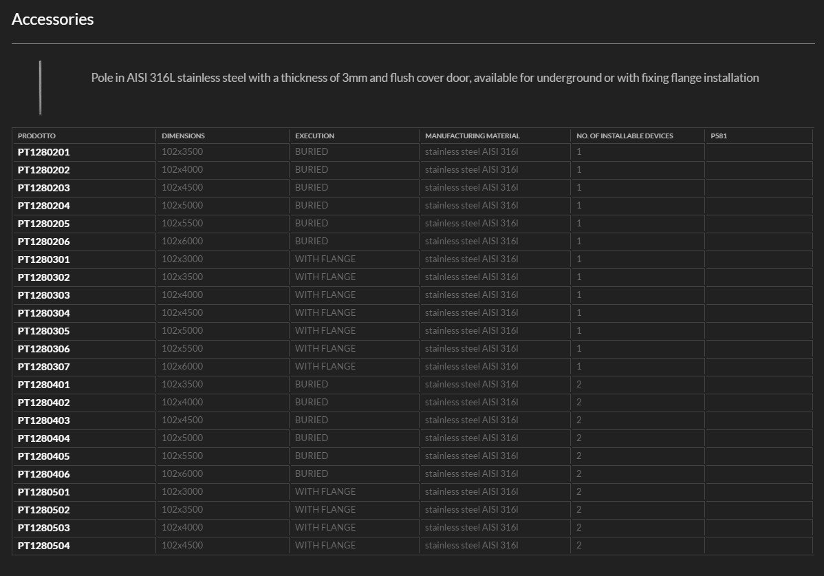 Pole in AISI 316L stainless steel with a thickness of 3 mm and flush cover door.