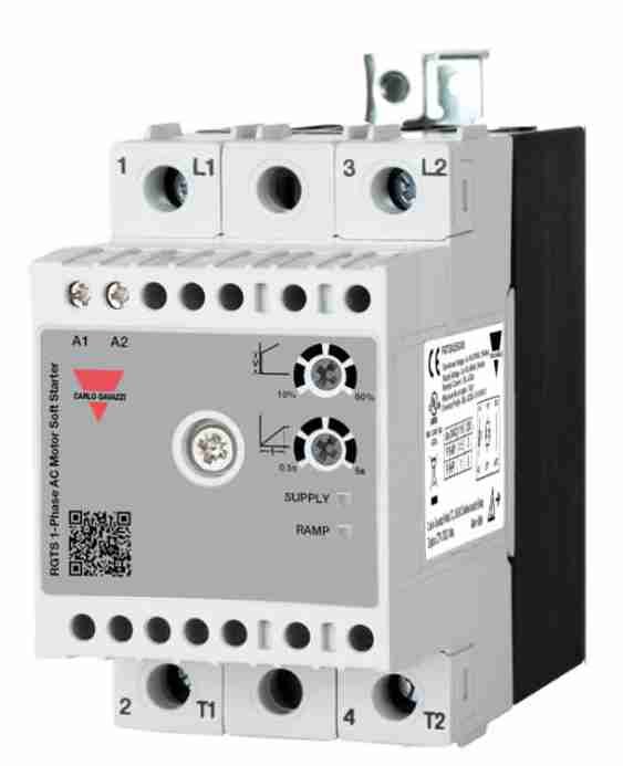 The RGTS is a very simple soft starter for low starting torque single phase AC induction motors. It only requires two easy settings for initial torque and ramp-up duration.