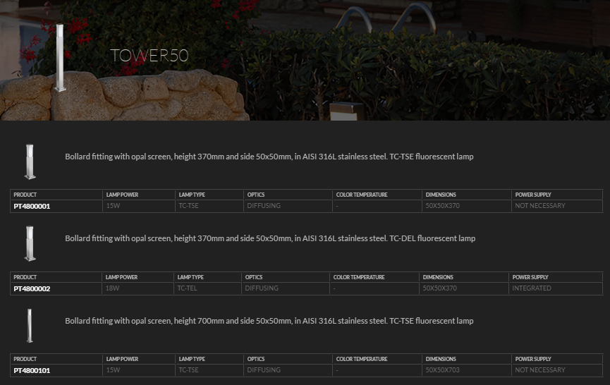 Stainless Steel Bollard luminaries TOWER50, TOWER100x100. Stral