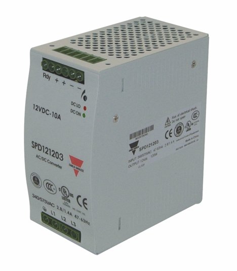 The three-phase switching power supplies of Carlo Gavazzi are available in 120 , 240 , 480 and 960 W, with output voltages 12 or 24 or 48 V DC.