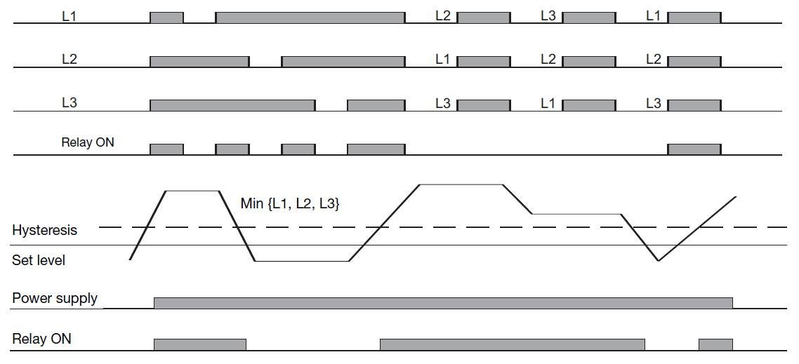 3-Phase relay for detection of incorrect phase sequence and phase loss with front knob that can be decided the undervoltage setpoint of the unit. This unit can be detect when all phases are present and have the correct sequence.