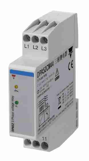 3-Phase relay for detection of incorrect phase sequence and phase loss. This unit can be detect when all phases are present and have the correct sequence. The DPA52_DS working in wide range and immune to mains disturbances, transients and harmonics problems. The PCB conformal coating provides additional protection against dust and humidity.