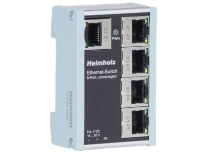 The Helmholz unmanaged Ethernet switches are suitable for a variety of industrial applications because of their very compact design. The lightweight and tough industrial design is suitable for mounting on a DIN rail and can be easily integrated into your network. Once plugged in, it's ready for use thanks to the simple Plug & Play solution. The tool-free push-in connection for the power supply supports you.