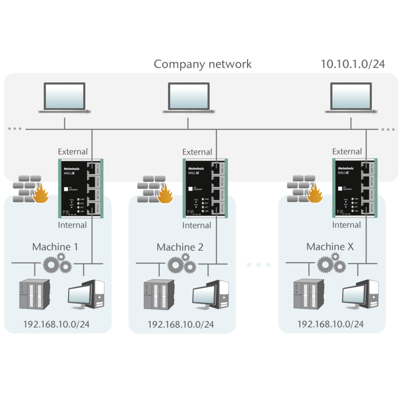 Secure communication and simple addressing – WALL IE protects your automation network against unauthorized access. Due to the individual configuration, the firewall can be easily adapted to the requirements of the respective machine network.