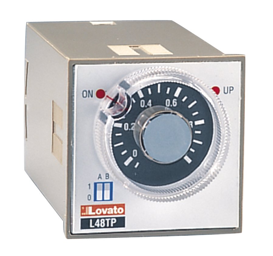 Lovato Electric Delay-On timers 48 x 48 mm. Time zone: 0.3 s -780 s or 18 s – 780 m (depending on model)