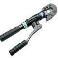 Hand operated hydraulic tool specifically designed to cut copper, aldrey, aluminum, aluminum-steel cables, stay wire and steel ropes having a max overall diameter of 25 mm and steel earthing rod up to 16 mm.