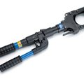 Hand operated hydraulic tool specifically designed to cut copper, aluminium and telecommunications cables having a max overall diameter of 85 mm. New model, self contained, robust and sturdy. The tool features a double speed action: a fast advancing speed for rapid approach of the blades to the cable and a slower more powerful speed for cutting. The blades are manufactured from high strength special steel, heat treated to ensure a long service life. The head can easily be opened to allow the cutting of running cables, and can rotate through 180 degrees, to enable the operator to work in the most comfortable position. HT-TC0851 features an automatic safety valve to bypass oil when reaching maximum pressure; a pressure release device can also be operated at any stage of operation.
