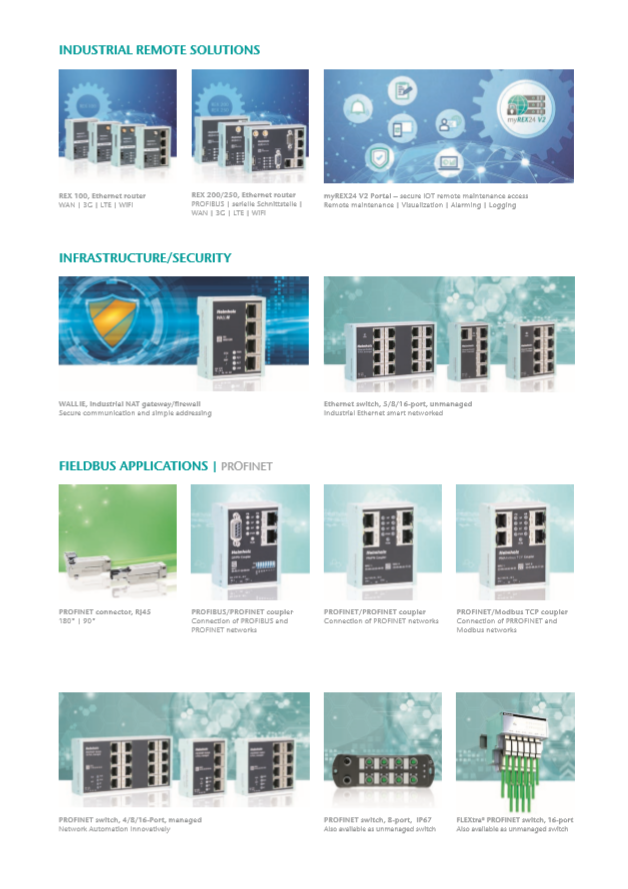 New industrial Ethernet Switches Unmanaged 10/100/1000 as well as IP67 series, Industrial Ethernet PROFINET Switches Managed 10/100/1000 as well as IP67 series, as well as industrial type Ethernet terminals, Couplers-Gateways for PROFINET / PROFIBUS / CAN BUS / MODBUS and solutions for remote I / O system, will be available from our company.